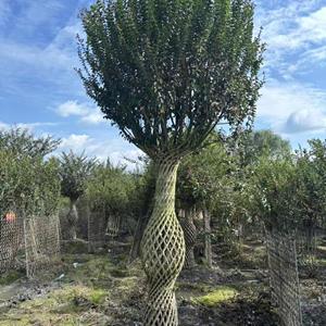 佛肚竹又名为禾本科丛生型竹类植物。幼秆深绿色,稍被白粉,老时转榄黄色。秆二型:正常圆筒形,高7-10米,节间30-35厘米;畸形秆通常25-50厘米,节间较正常短。箨叶卵状披针形;箨鞘无毛;箨耳发达,圆形或卵形至镰刀形;箨舌*短。性喜温暖、湿润、不耐寒。宜在肥沃、疏松、湿润、排水良好的砂质壤土中生长。国内外均有分布。该种常作盆栽,施以人工截顶培植,形成畸形植株以供观赏;在地上种植时则形成高大竹丛,偶尔在正常竿中也长出少数畸形竿。漂亮的佛肚竹也是很多工艺品、文玩物品的加工对象。如扇子、竹雕、乐器等等。 形态特征:佛肚竹竿二型:正常竿高8-10米,直径3-5厘米,尾梢略下弯,下部稍呈“之”字形曲折;节间圆柱形,长30-35厘米,幼时无白蜡粉,光滑无毛,下部略微肿胀;竿下部各节于箨环之上下方各环生一圈灰白色绢毛,基部*、二节上还生有短气根;分枝常自竿基部第三、四节开始,各节具1-3枝,其枝上的小枝有时短缩为软刺,竿中上部各节为数至多枝簇生,其中有3枝较为粗长。畸形竿通常高25-50厘米,直径1-2厘米,节间短缩而其基部肿胀,呈瓶状,长2-3厘米;竿下部各节于箨环之上下方各环生一圈灰白色绢毛带。生长习性:耐水湿,喜光植物。喜湿暖湿润气侯,抗寒力较低,能耐轻霜及*端0℃左右低温,冬季气温应保持在10℃以上,低于4℃往往受冻。北回归线以南的热带地区,可在露地安全越冬,华南北部的背风向阳处,尚可栽培。华中至华北的广大地区,均只宜盆栽,置温室或室内防寒越冬。喜光,但怕北方干燥季节的烈日暴晒,亦稍耐荫墒。喜肥沃湿润的酸性土,要求疏松和排水良好的酸性腐殖土及沙壤土。分布范围:产于中国广东,中国南方各地以及亚洲的马来西亚和美洲均有引种栽培。 佛肚竹原产于中国华南,各地多有栽培,南亚热带常绿阔叶林区(主要城市:福州、厦门、泉州、漳州、广州、佛山、顺德 、东莞 、惠州、汕头、台北、柳州、桂平、个旧) 。热带季雨林及雨林区(主要城市:海口、三亚、琼海、高雄、台南、深圳、湛江、中山、珠海、澳门、香港、南宁、钦州 北海、茂名、景洪)。主要价值: